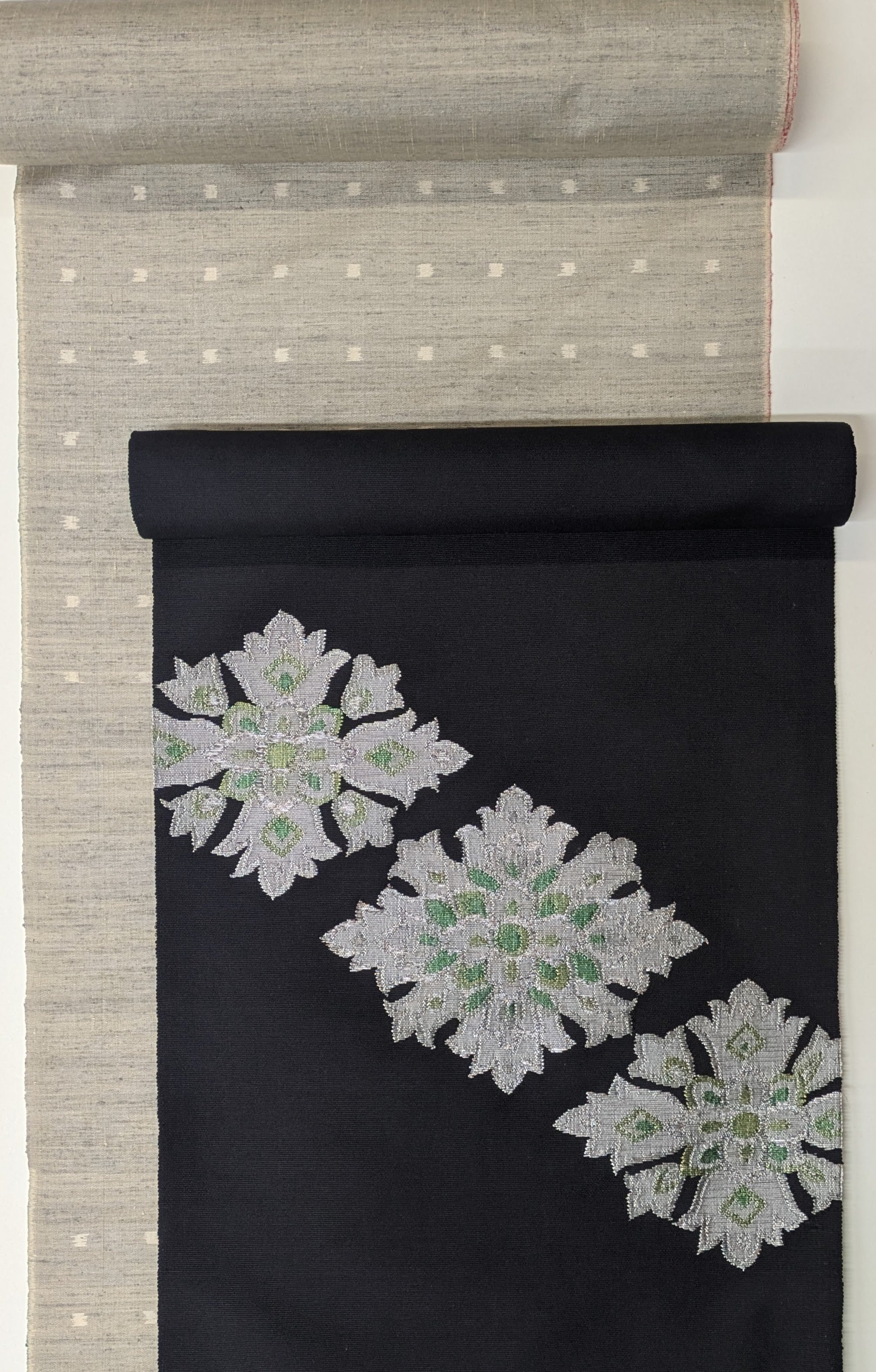 すくい織九寸帯(サラセン華紋)