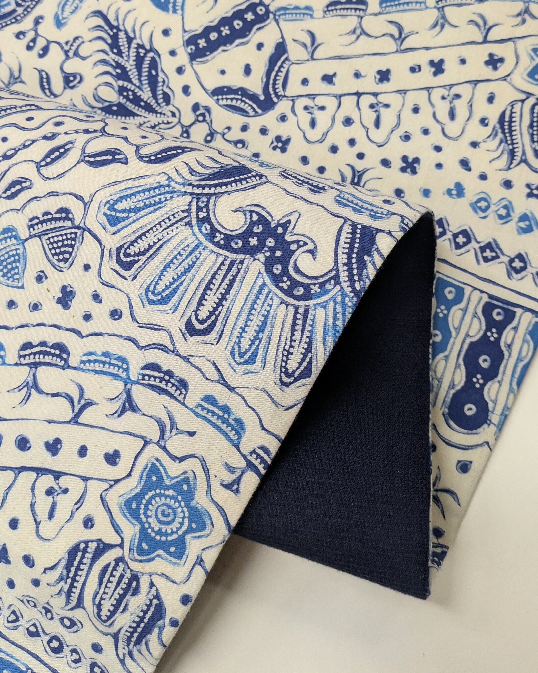 こちらの綿バティックは型押しと手描きを組み合わせて