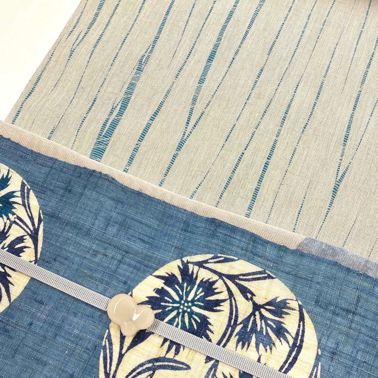 明るめの藍地に丸紋で撫子の柄が染められています。