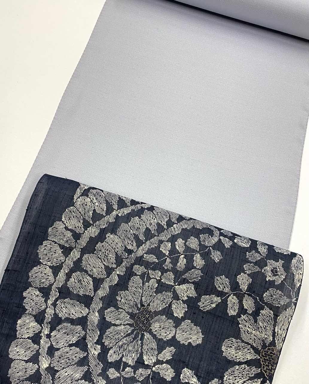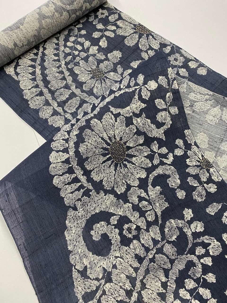 グレーがかった紺地にヨーロッパ更紗の柄、