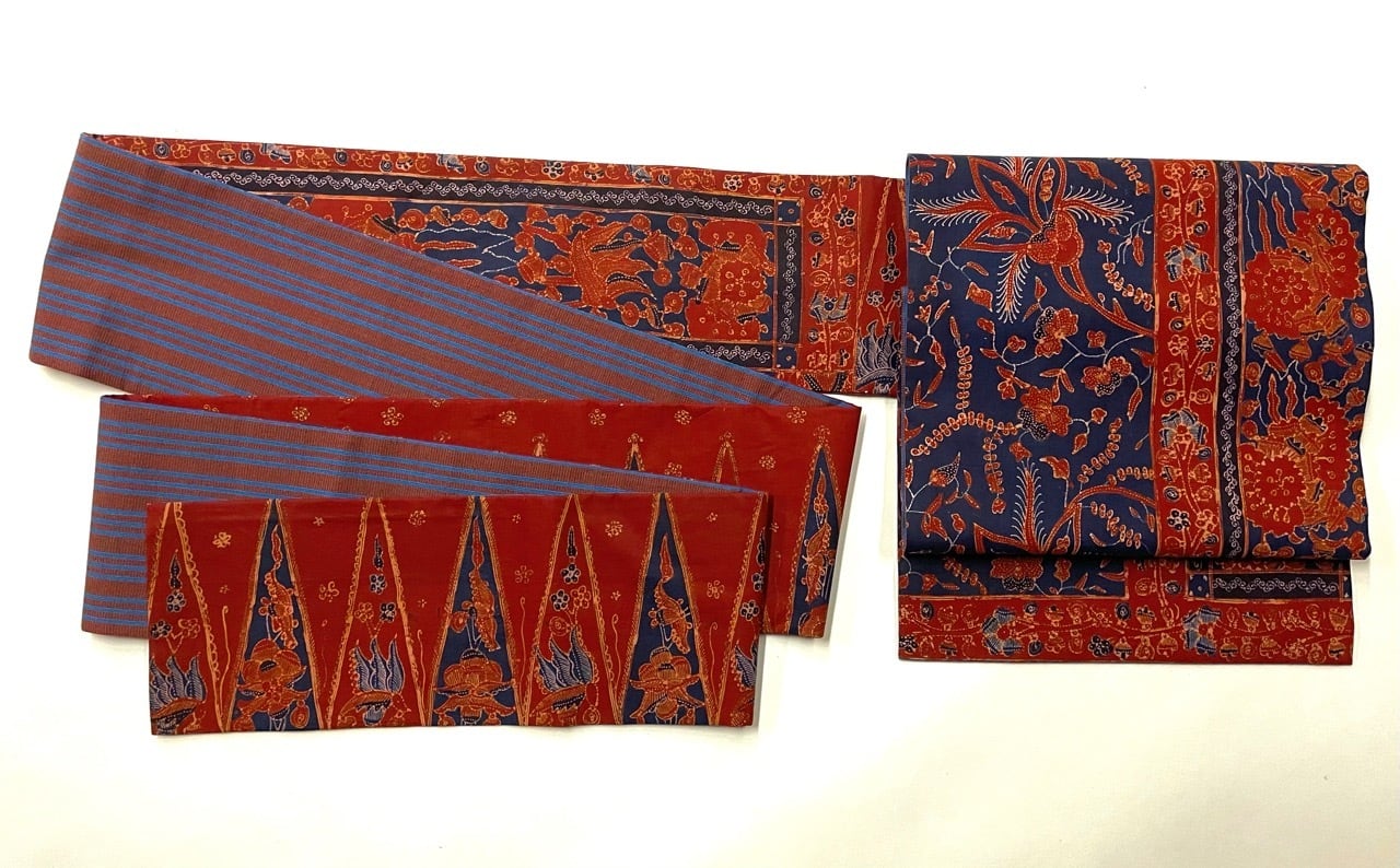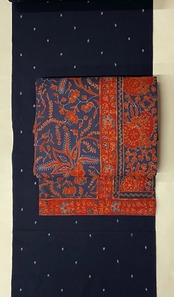 落ち着いた紺と茜色で描かれた美しい更紗模様です。