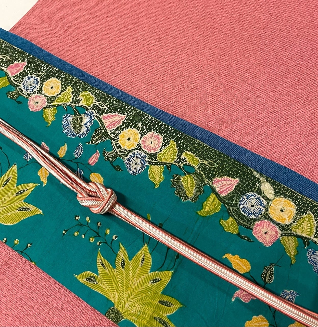 インドネシアの綿バティックの生地で仕立てましたオリジナル名古屋帯です。