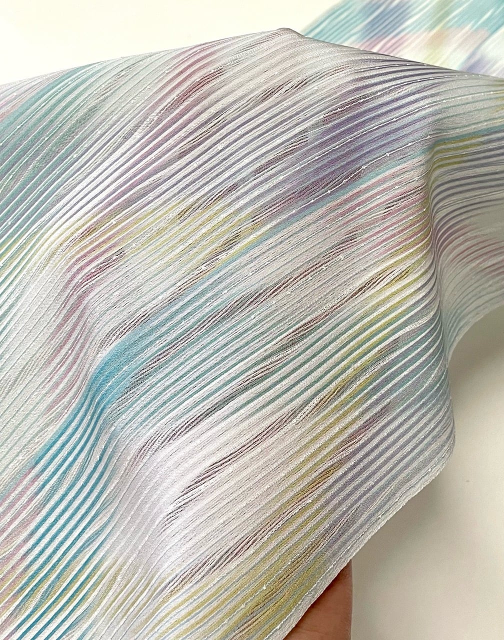流れるような透け感と虹のような色合いが美しいお着物です。