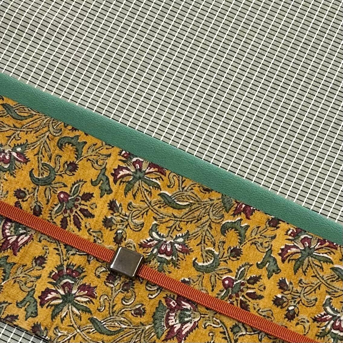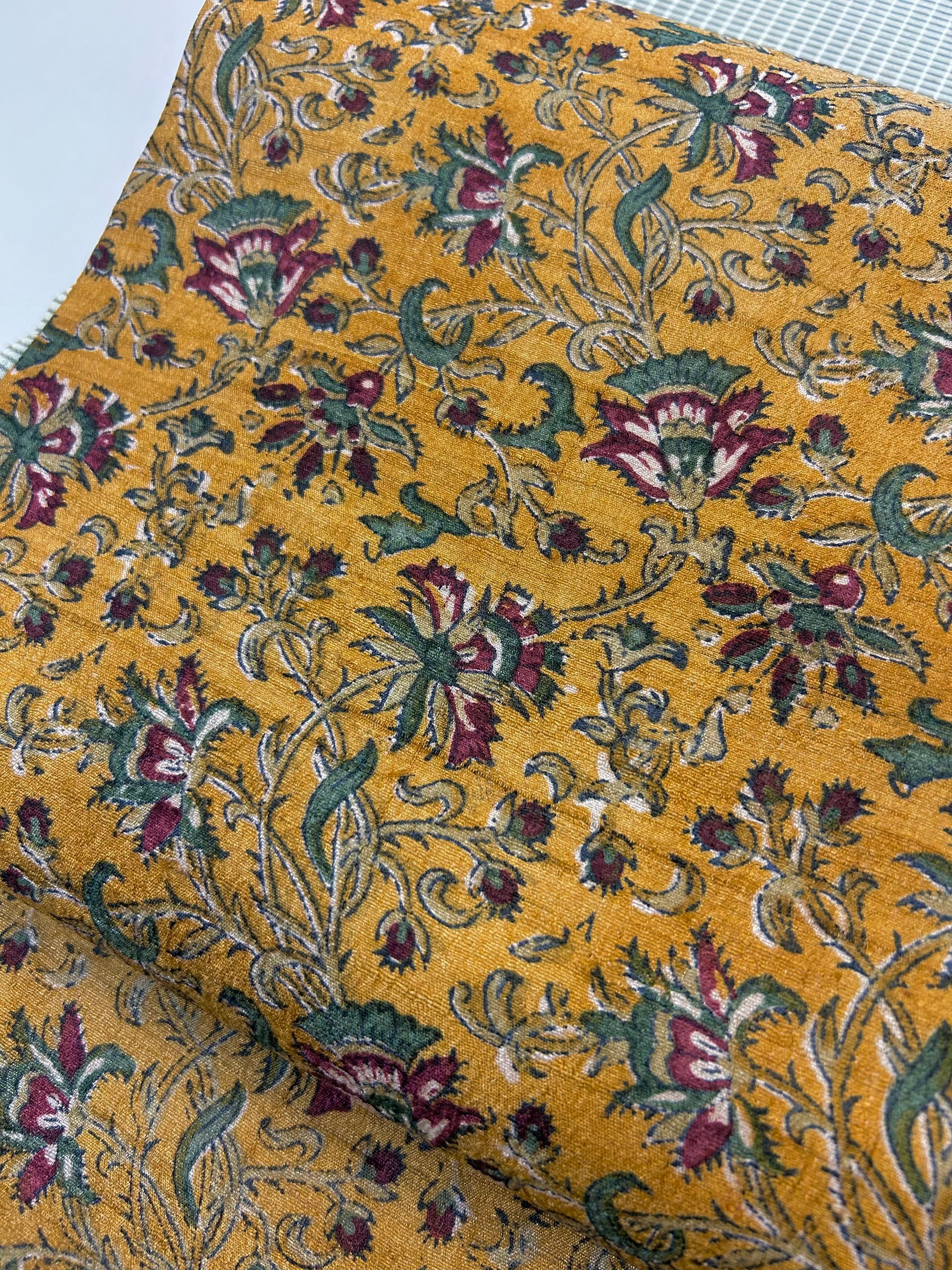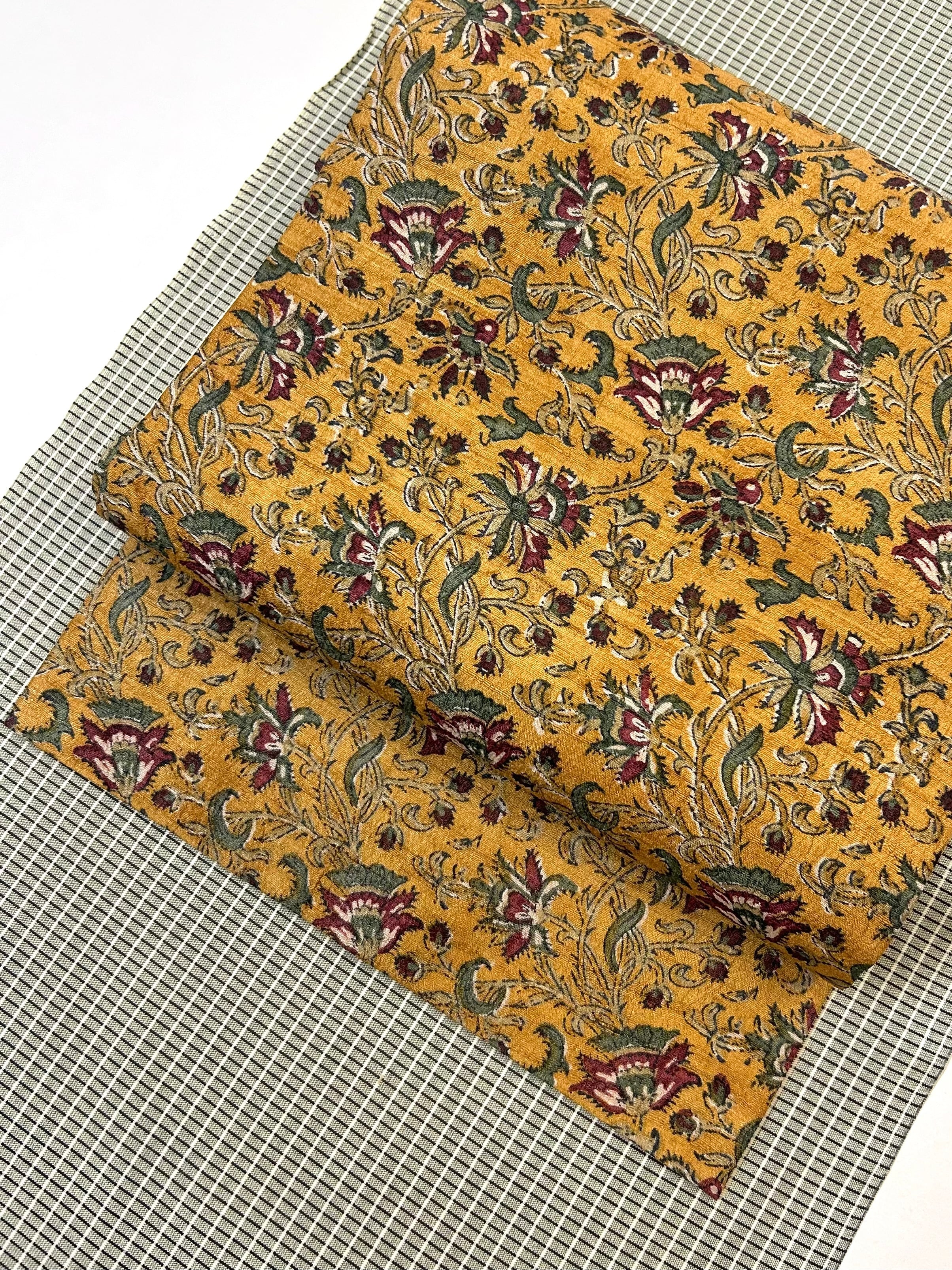 タッサーシルク名古屋帯(木版更紗・辛子地)