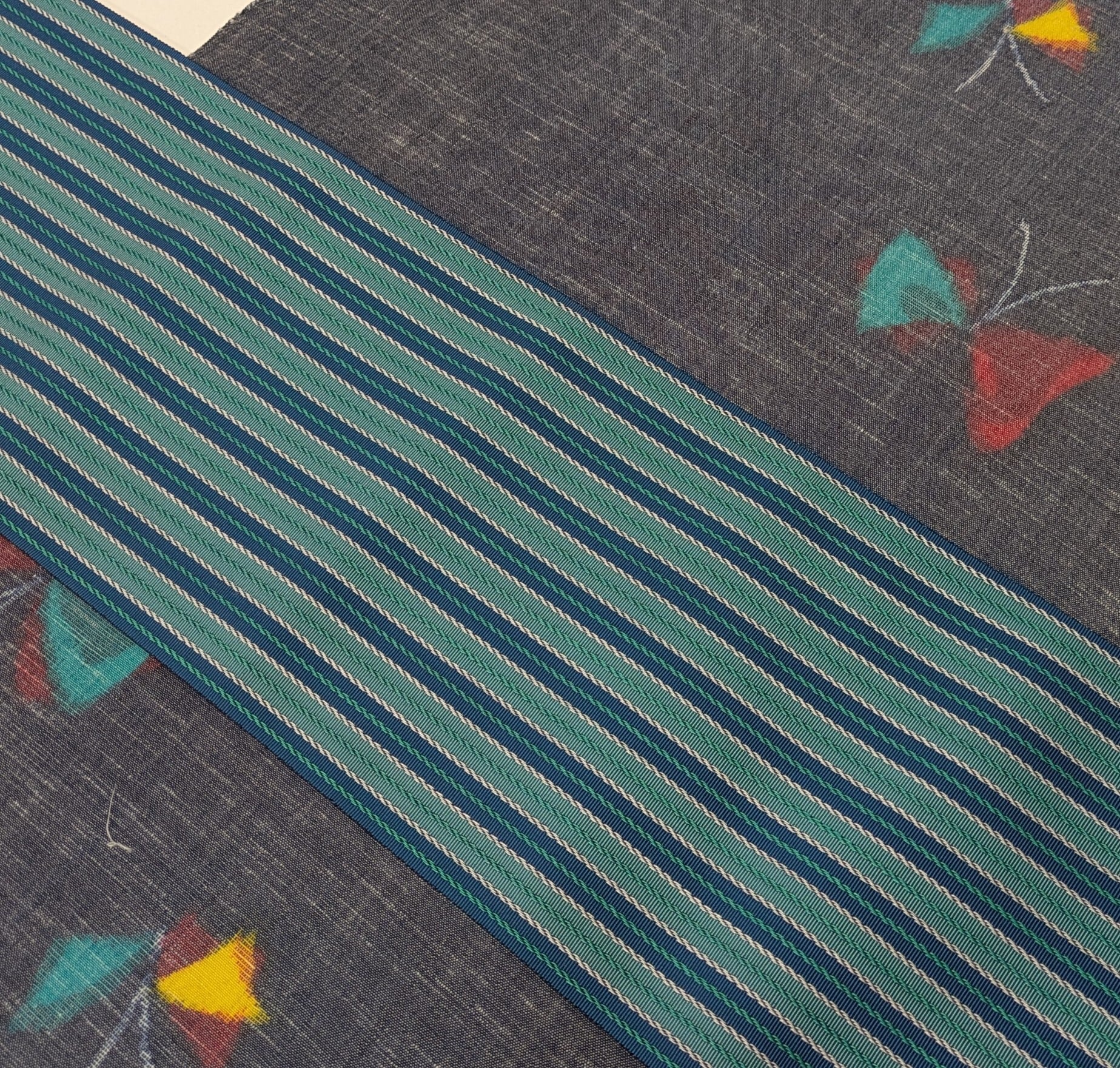 博多織・西村織物さんによる麻絹単衣半幅帯です。